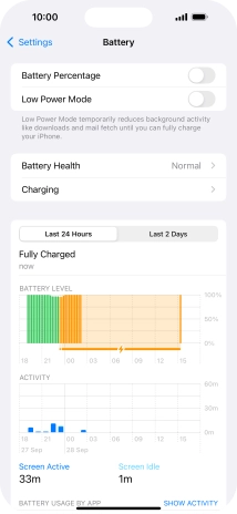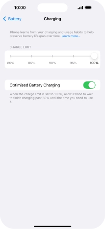 Press the indicator next to "Optimised Battery Charging" to turn the function on or off.