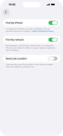 Press the indicator next to "Send Last Location" to turn the function on or off.