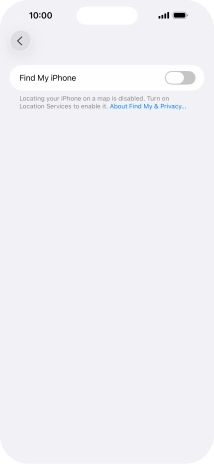 Press the indicator next to "Find My iPhone" to turn on the function.