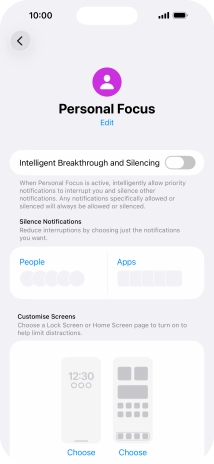 Press Apps and follow the instructions on the screen to select which apps you would like to receive notifications from when the selected focus mode is active.