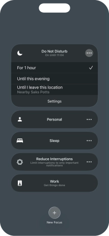 You can set your phone to activate the selected focus mode for a specified period of time, at a specific location or while using a specific app.