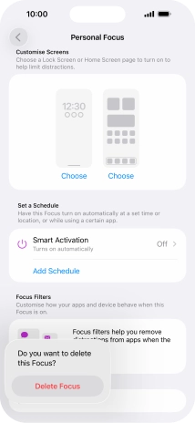 Press the required setting below "Set a Schedule" and follow the instructions on the screen to set up automatic activation of the selected focus mode.
