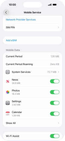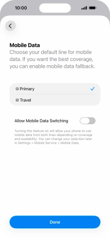 Press the indicator next to "Allow Mobile Data Switching" to turn the function on or off.