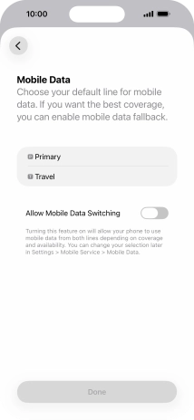 Press the indicator next to "Allow Mobile Data Switching" to turn the function on or off.