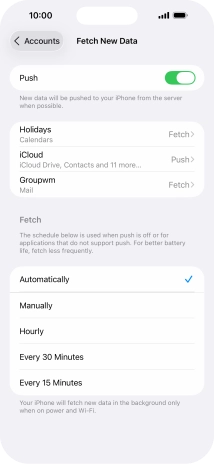 Press the required email account and follow the instructions on the screen to select settings for the specific account.