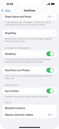 Press the indicator next to "FaceTime" to turn the function on or off.