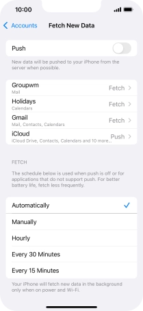 Press the required email account and follow the instructions on the screen to select settings for the specific account.