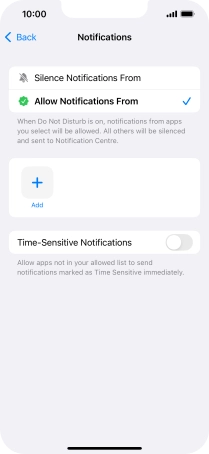 Press Apps and follow the instructions on the screen to select which apps you would like to receive notifications from when Do Not Disturb is turned on.