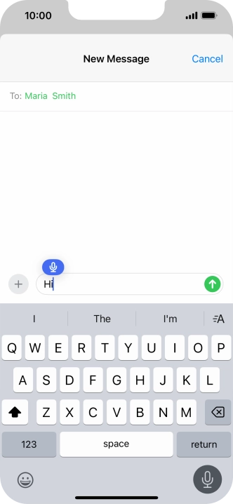 Press the microphone icon and say the required text.