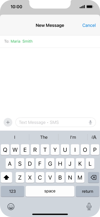 Press the text input field and write the text for your text message.