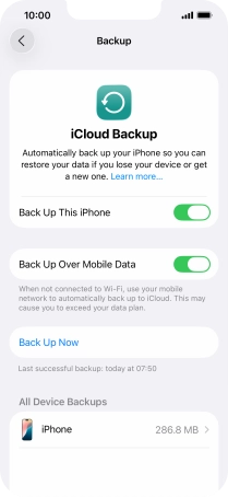 Press the indicator next to "Back Up Over Mobile Data" to turn the function on or off.