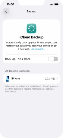 Press the indicator next to "Back Up This iPhone" to turn on the function.