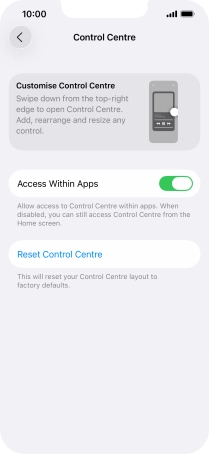 Using Control Centre, you can get quick access to selected functions on your phone.