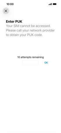 Key in the PUK and press OK.