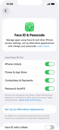 You can use your Face ID to turn off the phone lock code, allow access to apps and authorise payments.