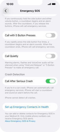 Press the indicator next to "Call After Serious Crash" to turn on the function.