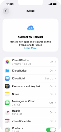 Synchronise the contents of your Apple iPhone 16e iOS 26 using iCloud