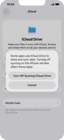 If you turn off the function, press Turn Off Syncing iCloud Drive.