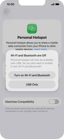 If Wi-Fi is turned on, press Wi-Fi and USB Only.