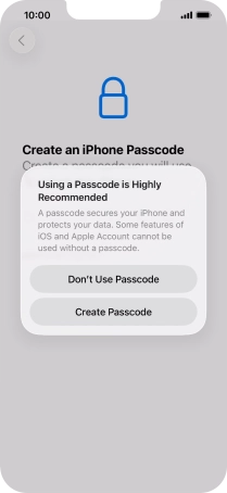 Follow the instructions on the screen to turn on use of phone lock code or press Don't Use Passcode.