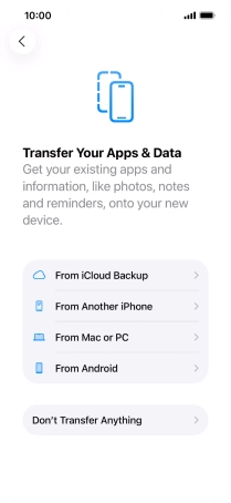Press Don't Transfer Anything and follow the instructions on the screen to finish the activation.