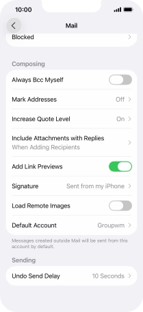 Select default email account on your Apple iPhone 16e iOS 26
