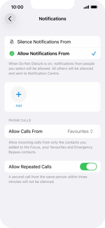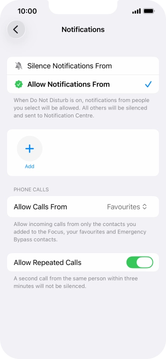 Press Add Schedule and follow the instructions on the screen to select settings for automatic activation of Do Not Disturb.