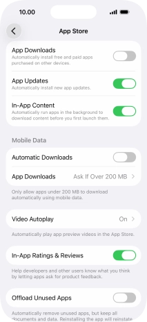 Press the indicator next to "Automatic Downloads" to turn the function on or off.