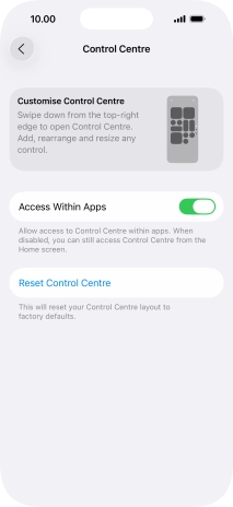 If you turn on the function, Control Centre can be used both on the home screen and while using other applications.