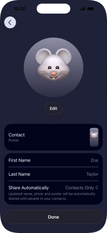 Press the name fields and follow the instructions on the screen to edit your name on the Contact Poster.