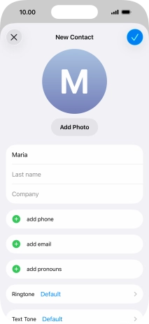 Follow the instructions on the screen to add more information such as an email address and a personal ring tone.