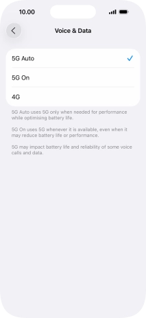 To turn on automatic switch between 5G and 4G, press 5G Auto.