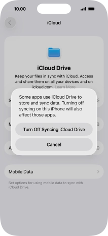 If you turn off the function, press Turn Off Syncing iCloud Drive.