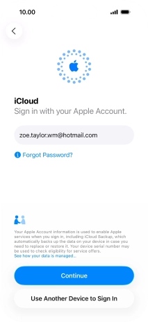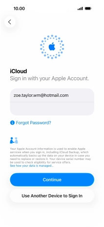 When this screen is displayed, your phone is ready to restore content from an iCloud backup.