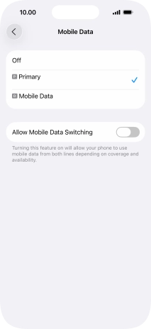 Press the indicator next to "Allow Mobile Data Switching" to turn the function on or off.