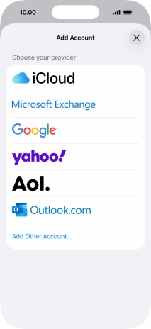 Press the required email account and follow the instructions on the screen to select settings for the specific account.