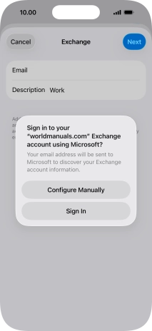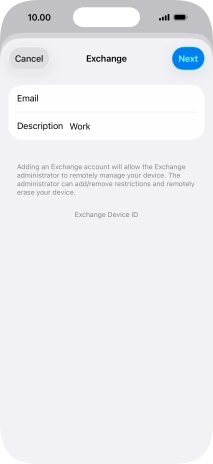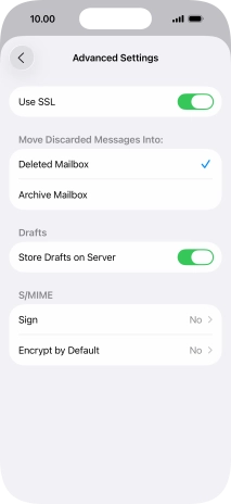 Press the required email account and follow the instructions on the screen to select settings for the specific account.