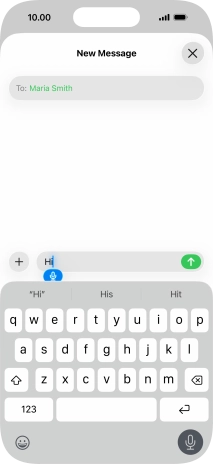 Press the text input field and write the text for your text message.