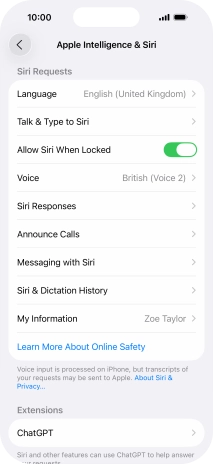 Select Siri settings on your Apple iPhone 17 Pro iOS 26