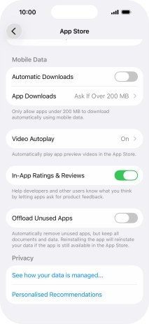 2. Turn Offload Unused Apps on or off