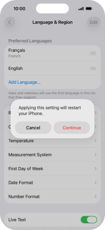 To subsequently select another language as the default language, press the move icon next to the required language and drag it to the top of the list.