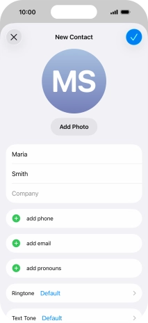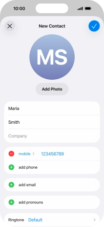 Follow the instructions on the screen to add more information such as an email address and a personal ring tone.