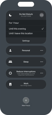 You can set your phone to activate the selected focus mode for a specified period of time, at a specific location or while using a specific app.
