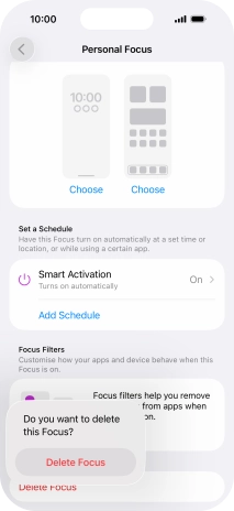 Press the required setting below "Set a Schedule" and follow the instructions on the screen to set up automatic activation of the selected focus mode.