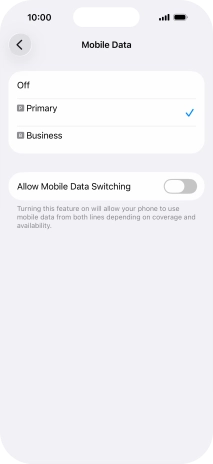 Press the indicator next to "Allow Mobile Data Switching" to turn the function on or off.