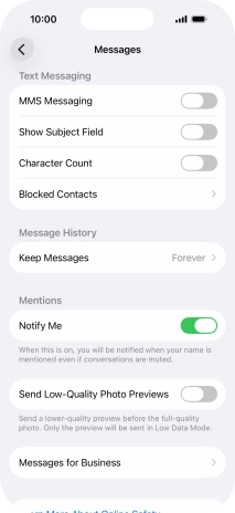 Press the indicator next to "MMS Messaging" to turn on the function.