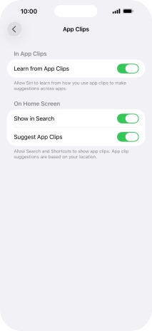 Press the required setting to turn the function on or off. If you turn on the function, you need to follow the instructions on the screen to set up Siri to recognise your voice.