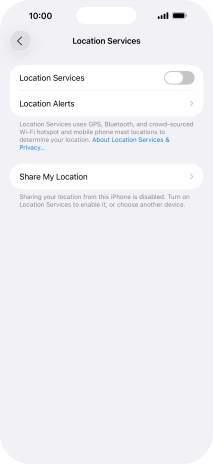 Press the indicator next to "Location Services" to turn the function on or off.
