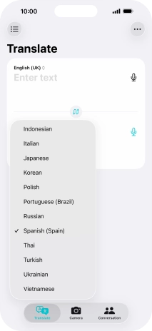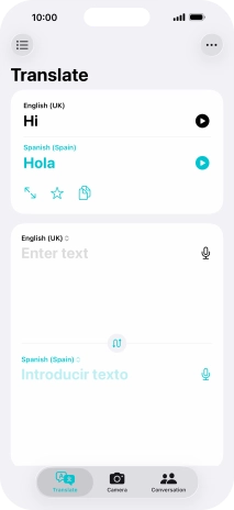 To translate speech, press the microphone icon and say the required word or sentence.
