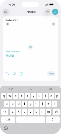 To translate text, press the text input field and key in the required text.